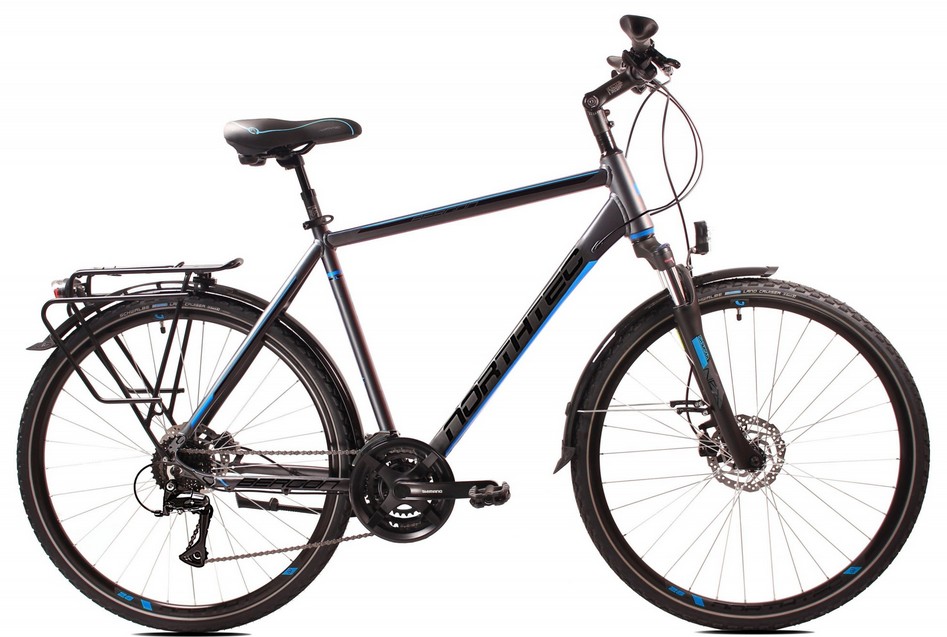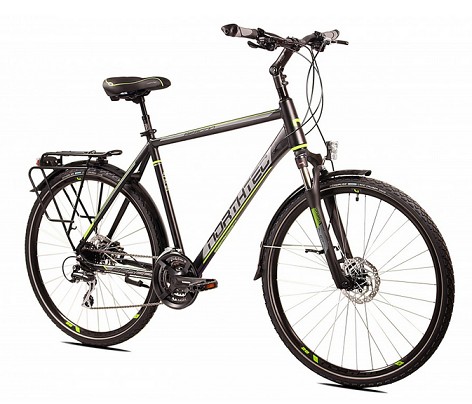 Nowy model roweru trekkingowego, dla wymagających cyklistów, pokonujących wielokilometrowe trasy w różnorodnym terenie. Wyposażony w hamulce Tarczowe hydrauliczne gemma. Lekka hydroformowana rama aluminiowa o komfortowej geometrii, posiadająca system: Cable Inside Frame . Niezawodna grupa napędowa Shimano Acera/Altus 3x8. Amortyzator NEX HLO DS 700C 63mm z regulacją i blokadą skoku zapewni optymalne tłumienie drgań I wstrząsów. Solidne, wzmacniane koła, zbudowane na piastach Alu Łożyska maszynowe 32H QR, szprychach Sapim, oraz oponach Schwalbe Land Cruiser z wkładką antyprzebiciową. Amortyzowany wspornik siodła, szerokie wygodne siodełko elastomerowe. W podstawowym wyposażeniu zamontowany jest bagażnik aluminiowy, oświetlenie ledowe bateryjne, solidne błotniki SKS oraz podpórkę.