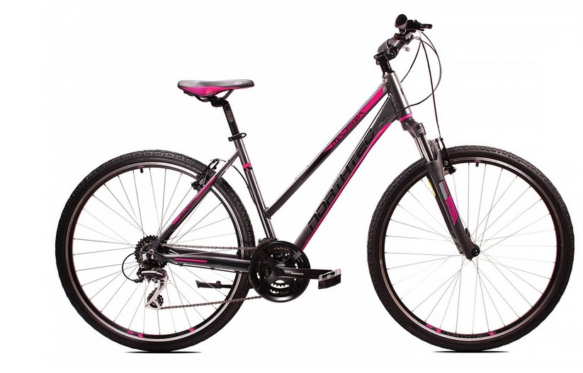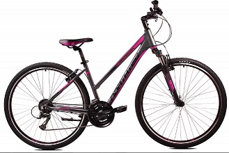 Uniwersalny, solidny, damski rower crossowy. Lekka hydroformowana rama aluminiowa o crossowej geometrii posiadająca system: Cable Inside Frame: Napęd Shimano Acera/Altus 3x7. Amortyzator Suntour NEX P 700C 63mm z regulacją skoku. Solidne, wzmacniane koła, zbudowane na piastach Shimano HT X500, szprychach Sapim oraz oponach o dużej przyczepności . Specjalne siodełko posiadające korpus z systemem amortyzacji D2, wkładkę żelową z pamięcią kształtu zapewniającą najwyższy komfort w każdej pozycji podczas jazdy.