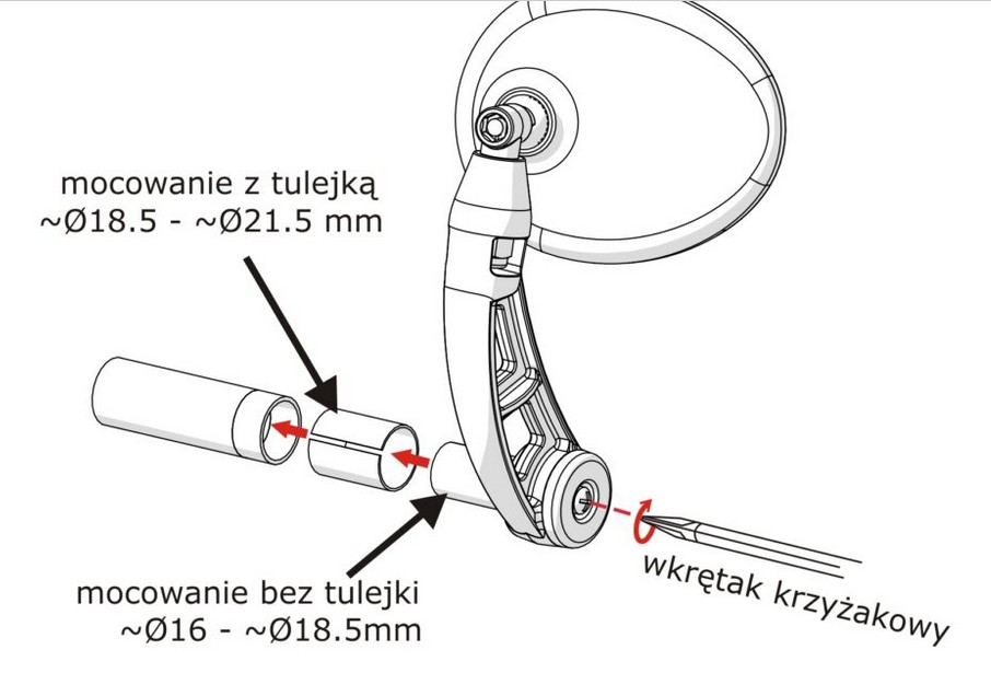 możliwość montażu przy kierownicach o średnicy otworu wewnętrznego od 16 do 21,5 mm.